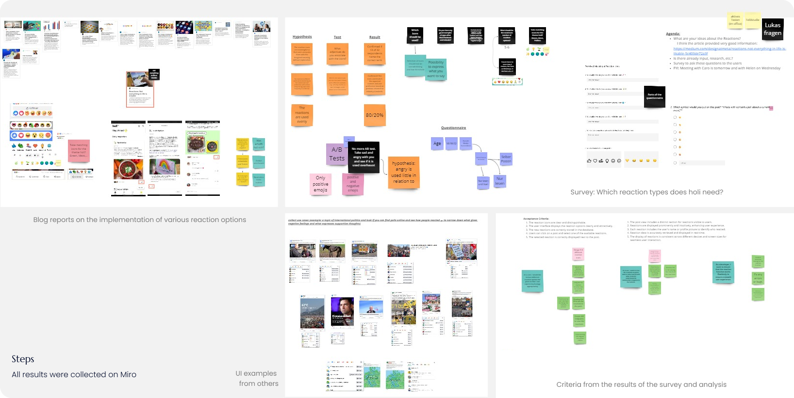 To better understand the needs and preferences of our target audience, I conducted a detailed user survey and analyzed the findings. Drawing from these insights and a comprehensive literature review on social media interactions, I developed an optimized user flow that incorporated the expanded reaction options and tailored them to the needs of our users.